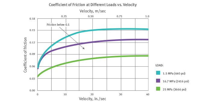 PTFE fibers enhance friction performance, dropping the dynamic coefficient of friction below 0.20. Higher loads only improve frictional behavior (Figure 1).