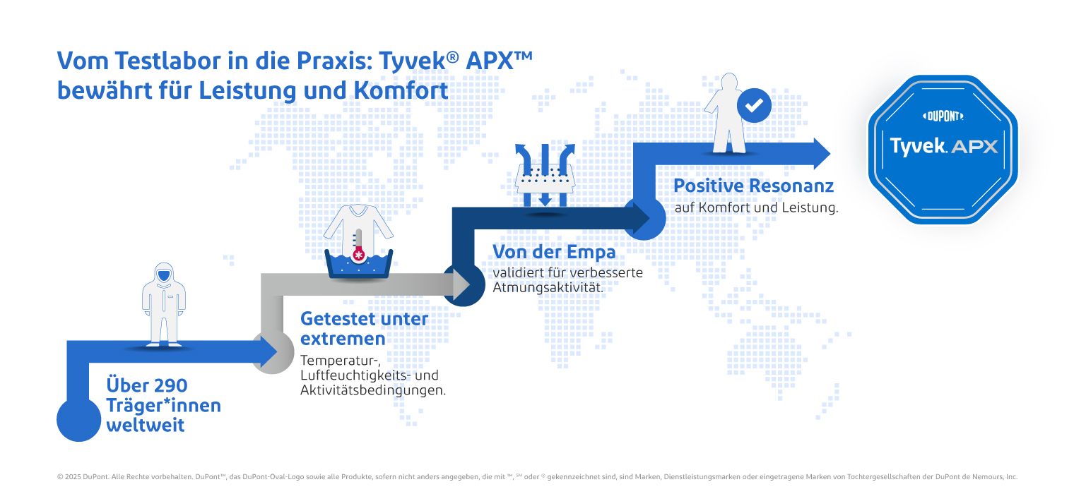 Im Falle des neuen Tyvek® APX™ bedeutet Komfort: Steigerung des Wohlbefindens der Arbeitnehmer*innen durch Verringerung des Risikos eines Hitzestaus beim Tragen wichtiger Schutzkleidung. Das ist eine große Herausforderung, da bei der Entwicklung von Schutzkleidung traditionell ein gewisser Komfortverlust in Kauf genommen werden muss, um den erforderlichen Schutz und die Haltbarkeit zu gewährleisten. Es ist an der Zeit, dieses Paradigma zu ändern.