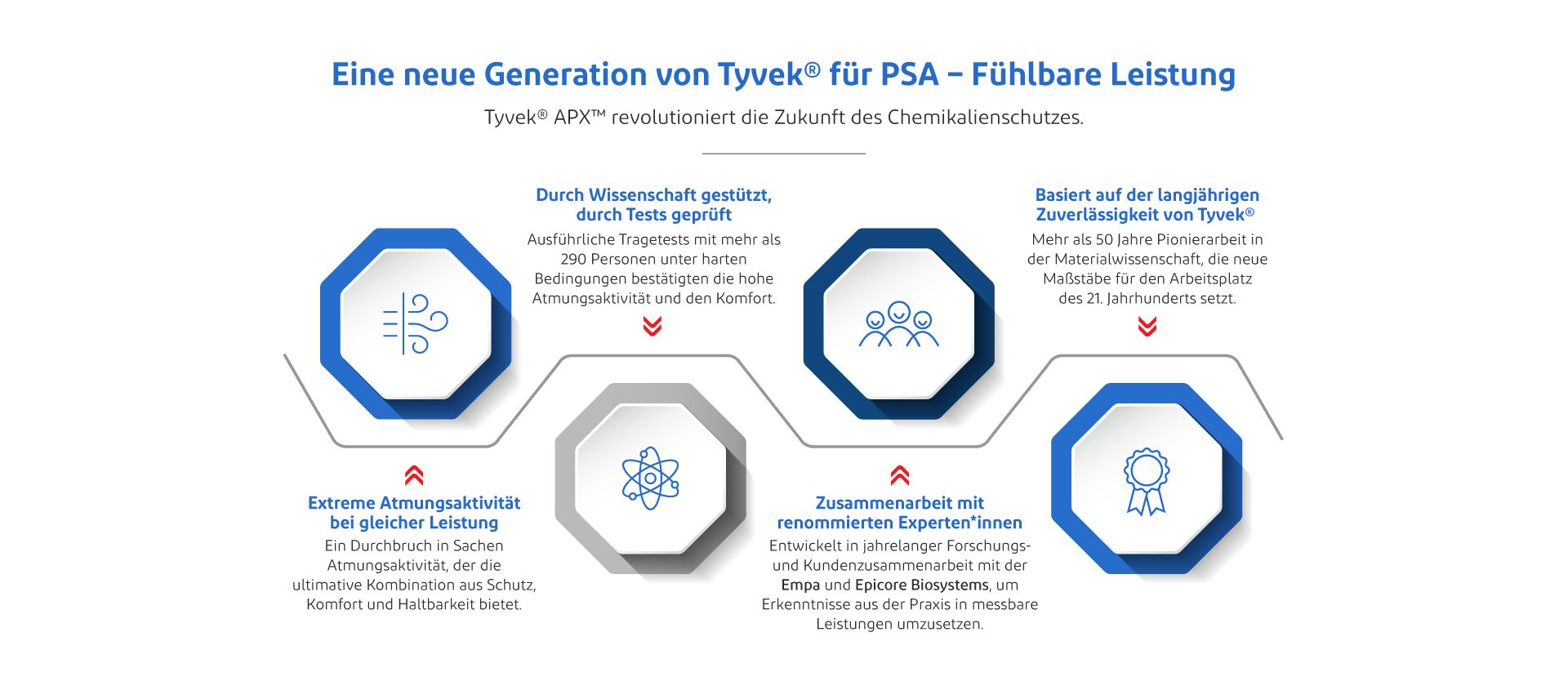 Eine neue Ära der Einweg-Chemikalienschutzkleidung wird eingeläutet. Das innovative Tyvek® APX™ Material bietet extreme Atmungsaktivität bei gleichwertiger Strapazierfähigkeit und Leistung und revolutioniert Ihr Gefühl von Komfort und Sicherheit am Arbeitsplatz. Sind Sie bereit für die nächste Revolution?